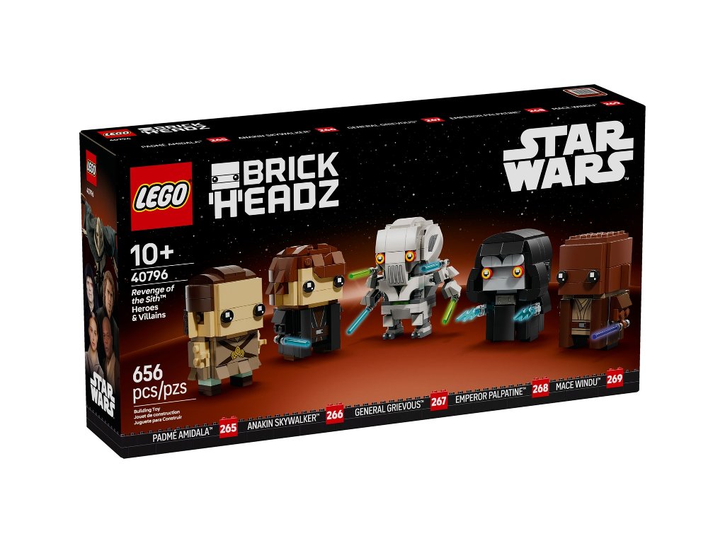 - Stavebnice Star Wars™ z kostek – Oslavte 20. výročí fantastického dobrodružného filmu Star Wars: Pomsta Sithů ve stylu LEGO® BrickHeadz™ s touto sadou hrdinů a padouchů