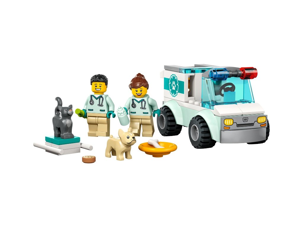 - Nápadité hraní – Děti pomohou ubohým zvířátkům na nosítka, poté posadí minifigurky veterinářů do kabiny řidiče a zamíří na nejbližší veterinární kliniku