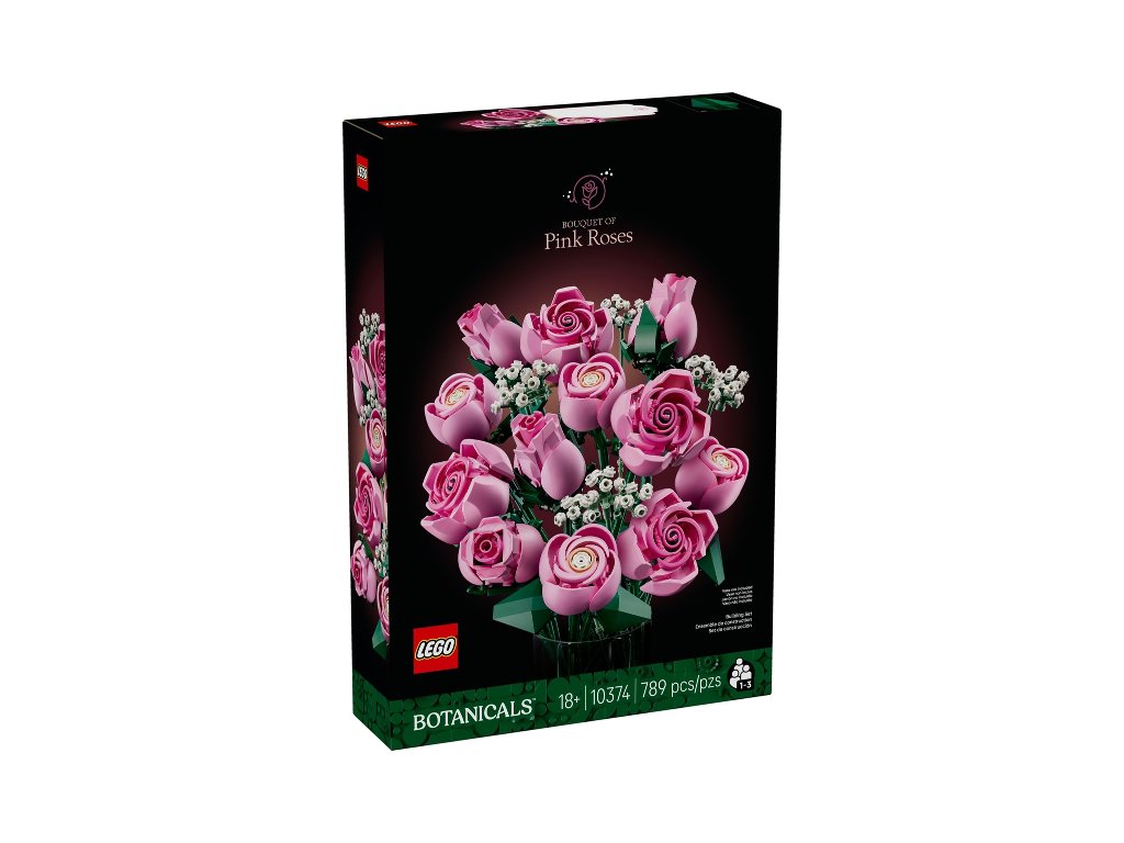 Vytvořte si elegantní květinovou dekoraci z kostek a obdivujte její detaily se stavebnicí LEGO® Botanicals (10374) Kytice růžových růží pro dospělé.