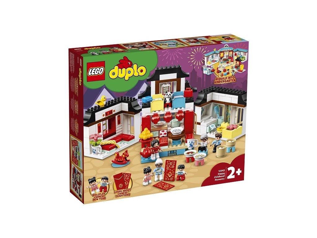 - Prémiová stavebnice 2 v 1 Radostné dětské chvíle (10943) z řady LEGO® DUPLO® Město děti učí o dvou významných rodinných událostech: oslavě čínského nového roku a prvním dni ve školce.