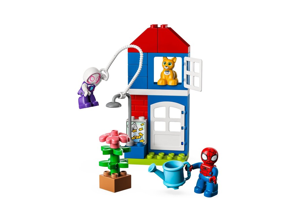Malí milovníci Spider-Mana se mohou těšit na spoustu zábavy. Součástí jsou 3 figurky – Spidey, Ghost-Spider a kočka Bootsie – dále rostlina, která může „růst“ přidáváním kostek na stonek, pavučinový prvek, aby se postavy mohly ovíjet okolo sloupů pouličního osvětlení přesně jako v seriálu, a také otevírací dveře a okna, aby měli malí zvědavci co objevovat.