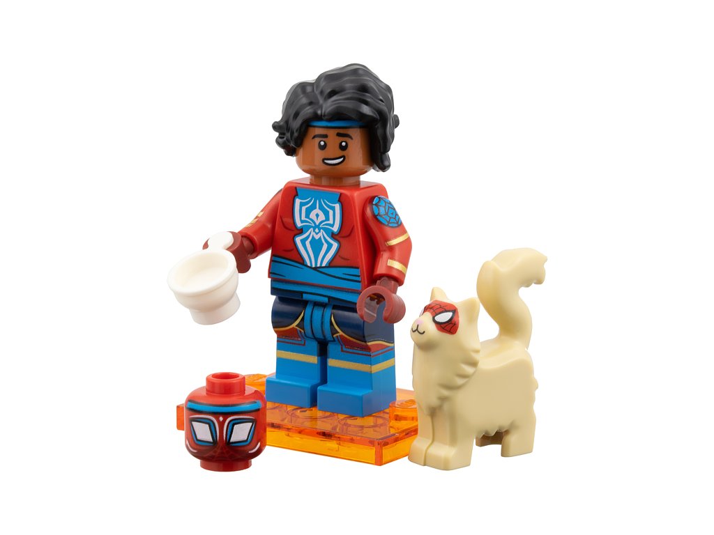 V každé krabičce s překvapením najdete 1 sběratelskou minifigurku ze světa Spider-Mana. Celkem jich můžete nasbírat 12: Miles Morales / Spider-Man, Miguel O'Hara / Spider-Man 2099, Gwen Stacyová / Spider Gwen, Hobie Brown / Spider-Punk, Pavitr Prabhakar / Spider-Man India, Miles G. Morales / Prowler, Peter B. Parker / Spider-Man a May „Mayday“ Parkerová, Margo Kessová / Spider-Byte, Peter Parker / Werewolf Spider-Man, Patrick O'Hara / Web-Slinger, Petra Parkerová / Cyborg Spider-Woman a Charlotte Webberová / Sun-Spider.