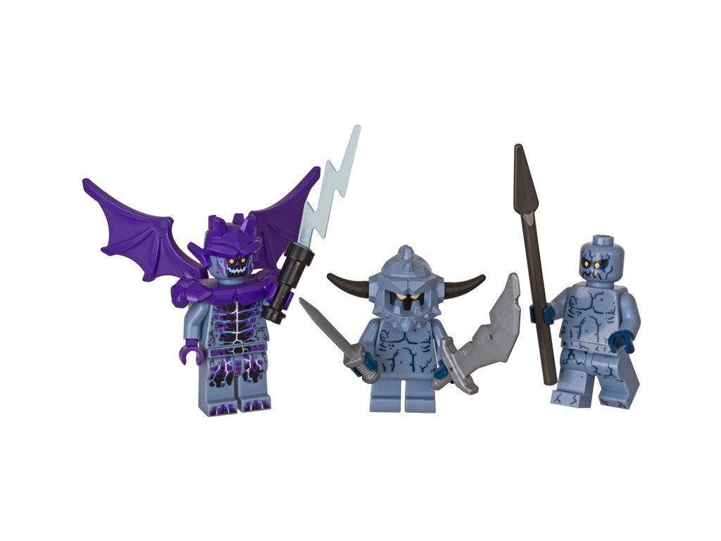 Přidej další pomocnou ruku do boje - v Doplňkové sadě kamenných příšer od LEGO® NEXO KNIGHTS™. Vždy ve jménu zla - tyto hrůzostrašné příšery jsou věrné pouze zlému Jestrovi a jsou vždy připraveny působit v království Knighton chaos! Tento dokonalý dárek pro všechny fanoušky NEXO KNIGHTS obsahuje 3 minifigurky a navíc různé zbraně a doplňky.