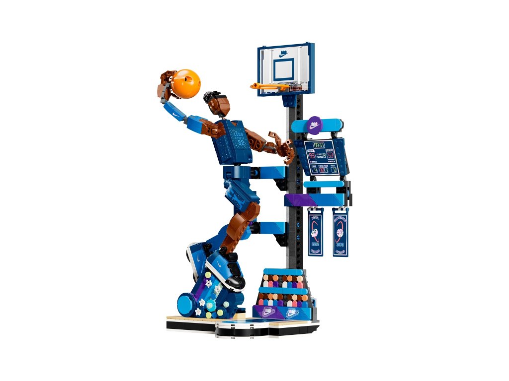 - Sportovní dekorace – Po sestavení tato stavebnice LEGO® Nike poslouží jako zábavná basketbalová dekorace, která do každé místnosti přinese závan napětí