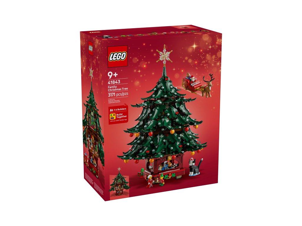 Vytvořte si novou rodinnou tradici a postavte si nádherný ozdobný LEGO® (41843) Rodinný vánoční stromek, na který bude hrdý každý milovník vánočních dekorací. Tento sběratelský výstavní model LEGO poslouží jako zábavná aktivita, která během svátků sblíží celou rodinu a poslouží jako skvělý vánoční dárek pro děti od 9 let. Stavebnice obsahuje velký vánoční stromek na podstavci s otevíracími panely a skrytými místnostmi. Nechybí sáně pro Santa Clause, figurka soba, „plyšák“ sněhuláka a soba, Kočka Vločka z kostek, paní Clausová a 5 pracovitých skřítků se zábavnými doplňky. Po svátcích můžete stromek rozdělit na části a snadno ho uschovat do příštích Vánoc.