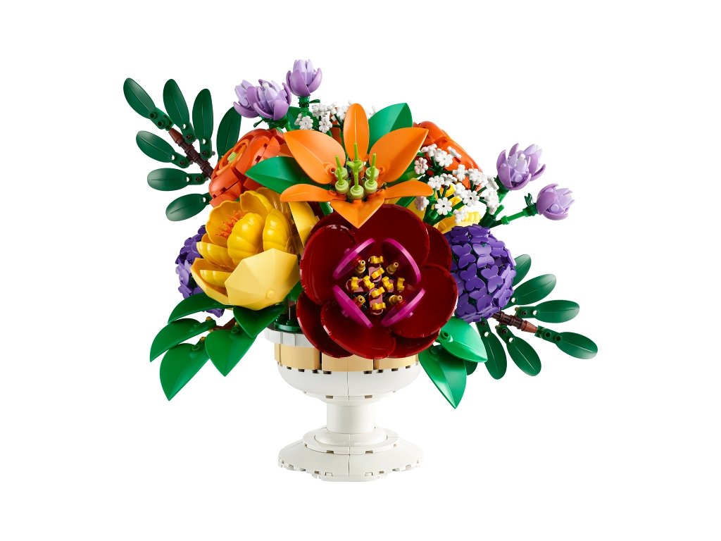 - Květiny LEGO® – Mezi 14 květinami v této stavebnici najdete kamélie, pivoňky, hortenzie, šater, pryskyřník, bouvardie a lilie a můžete si je vystavit v sestavitelné bílé váze